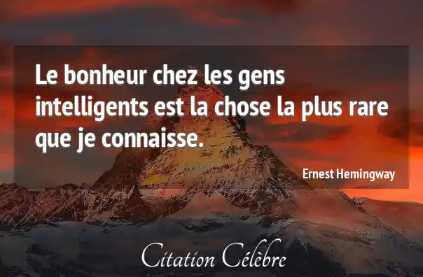 Le bonheur chez les gens intelligents est la chose la plus rare que je connaisse.