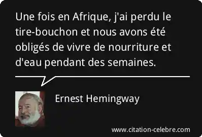 Une fois en Afrique, j'ai perdu le tire-bouchon et nous avons été obligés de vivre de nourriture et d'eau pendant des semaines.