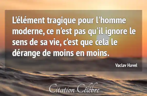 L'élément tragique pour l'homme moderne, ce n'est pas qu'il ignore le sens de sa vie, c'est que cela le dérange de moins en moins.