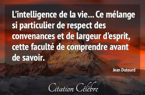 L'intelligence de la vie... Ce mélange si particulier de respect des convenances et de largeur d'esprit, cette faculté de comprendre avant de savoir.