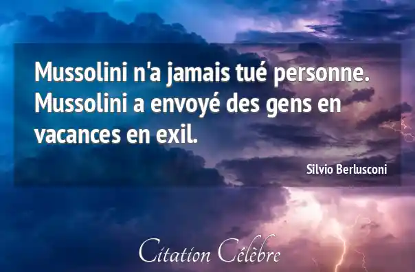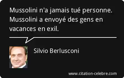 Citation Silvio Berlusconi gens : Mussolini n'a jamais tué personne. Mussolini a envoyé des gens...