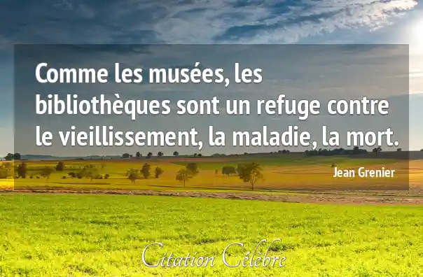 Comme les musées, les bibliothèques sont un refuge contre le vieillissement, la maladie, la mort.