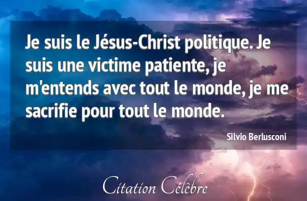 Je suis le Jésus-Christ politique. Je suis une victime patiente, je m'entends avec tout le monde, je me sacrifie pour tout le monde.