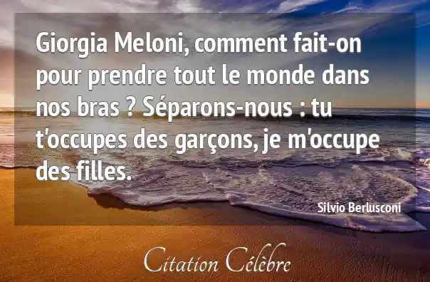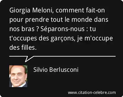 Giorgia Meloni, comment fait-on pour prendre tout le monde dans nos bras ? Séparons-nous : tu t'occupes des garçons, je m'occupe des filles.