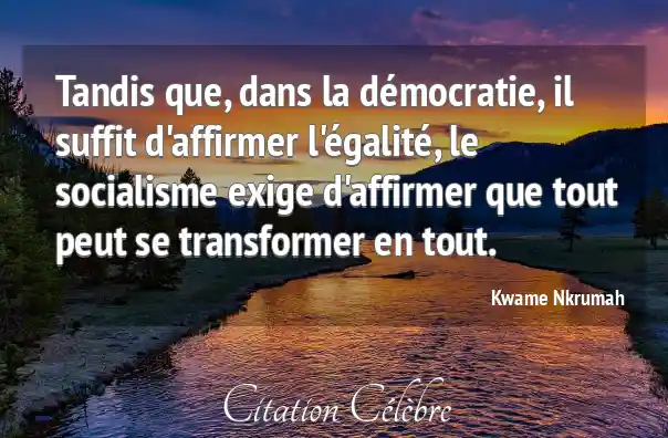Tandis que, dans la démocratie, il suffit d'affirmer l'égalité, le socialisme exige d'affirmer que tout peut se transformer en tout.