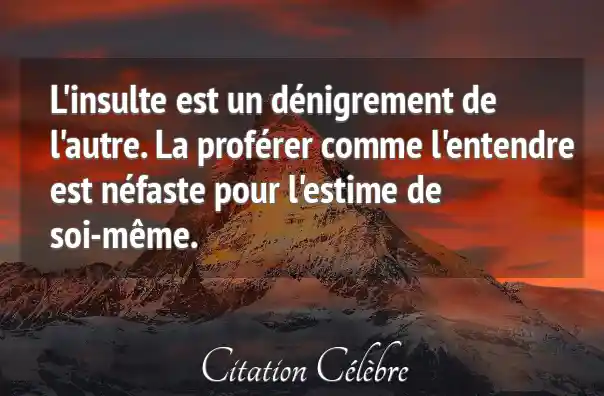 L'insulte est un dénigrement de l'autre. La proférer comme l'entendre est néfaste pour l'estime de soi-même.
