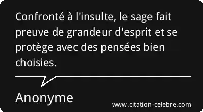 Confronté à l'insulte, le sage fait preuve de grandeur d'esprit et se protège avec des pensées bien choisies.