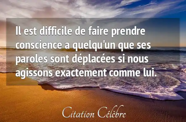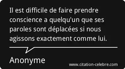 Il est difficile de faire prendre conscience a quelqu'un que ses paroles sont déplacées si nous agissons exactement comme lui.