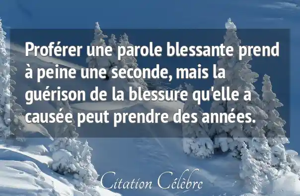 Proférer une parole blessante prend à peine une seconde, mais la guérison de la blessure qu'elle a causée peut prendre des années.