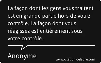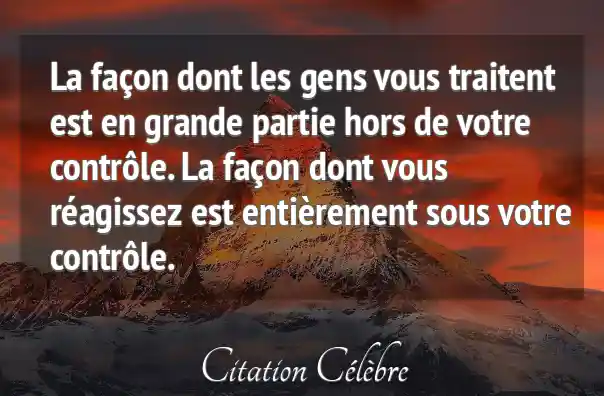 La façon dont les gens vous traitent est en grande partie hors de votre contrôle. La façon dont vous réagissez est entièrement sous votre contrôle.