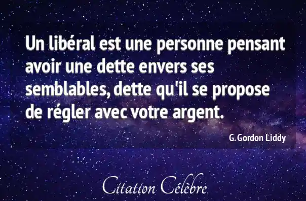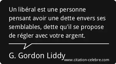 Un libéral est une personne pensant avoir une dette envers ses semblables, dette qu'il se propose de régler avec votre argent.