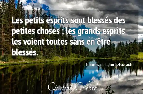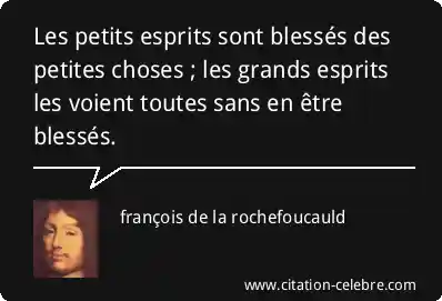 Les petits esprits sont blessés des petites choses ; les grands esprits les voient toutes sans en être blessés.