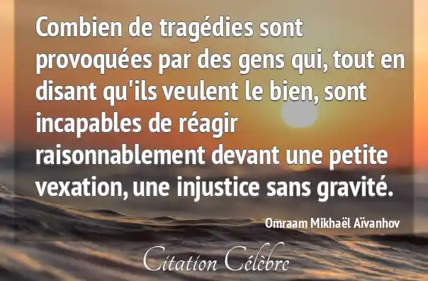 Combien de tragédies sont provoquées par des gens qui, tout en disant qu'ils veulent le bien, sont incapables de réagir raisonnablement devant une petite vexation, une injustice sans gravité.