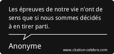 Les épreuves de notre vie n'ont de sens que si nous sommes décidés à en tirer parti.