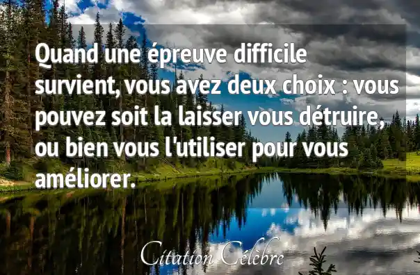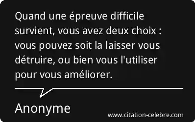 Quand une épreuve difficile survient, vous avez deux choix : vous pouvez soit la laisser vous détruire, ou bien vous l'utiliser pour vous améliorer.