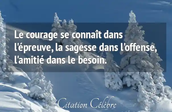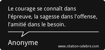 Le courage se connaît dans l'épreuve, la sagesse dans l'offense, l'amitié dans le besoin.