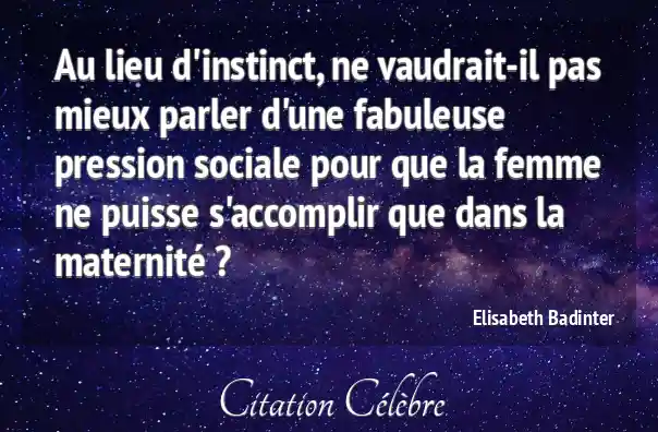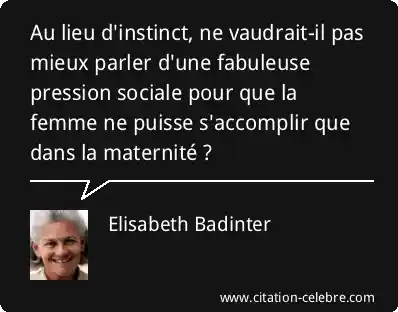 Au lieu d'instinct, ne vaudrait-il pas mieux parler d'une fabuleuse pression sociale pour que la femme ne puisse s'accomplir que dans la maternité ?