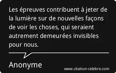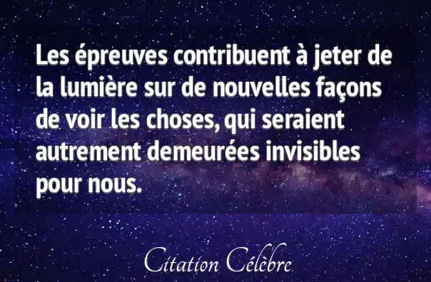 Les épreuves contribuent à jeter de la lumière sur de nouvelles façons de voir les choses, qui seraient autrement demeurées invisibles pour nous.