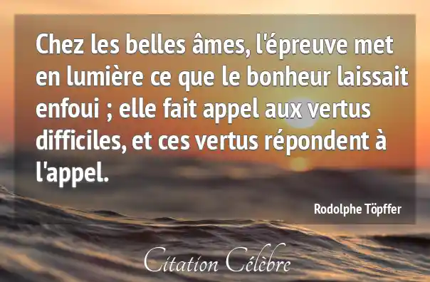 Chez les belles âmes, l'épreuve met en lumière ce que le bonheur laissait enfoui ; elle fait appel aux vertus difficiles, et ces vertus répondent à l'appel.