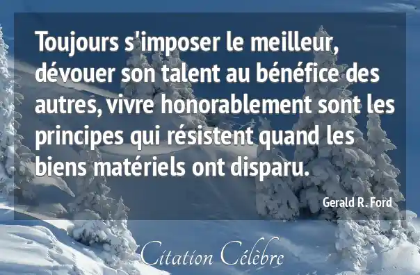 Toujours s'imposer le meilleur, dévouer son talent au bénéfice des autres, vivre honorablement sont les principes qui résistent quand les biens matériels ont disparu.