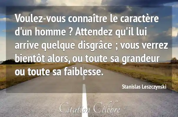 Voulez-vous connaître le caractère d'un homme ? Attendez qu'il lui arrive quelque disgrâce ; vous verrez bientôt alors, ou toute sa grandeur ou toute sa faiblesse.