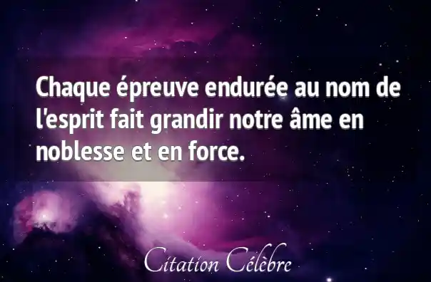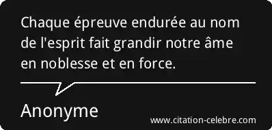 Chaque épreuve endurée au nom de l'esprit fait grandir notre âme en noblesse et en force.