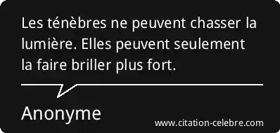 Les ténèbres ne peuvent chasser la lumière. Elles peuvent seulement la faire briller plus fort.