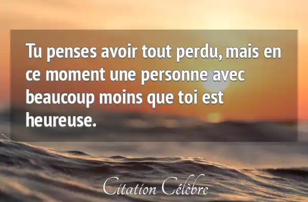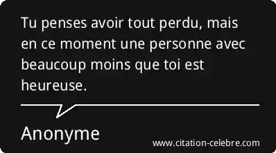 Tu penses avoir tout perdu, mais en ce moment une personne avec beaucoup moins que toi est heureuse.
