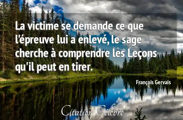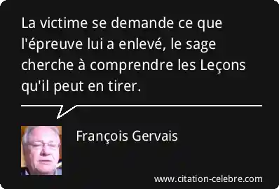 La victime se demande ce que l'épreuve lui a enlevé, le sage cherche à comprendre les Leçons qu'il peut en tirer.