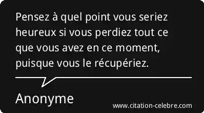 Pensez à quel point vous seriez heureux si vous perdiez tout ce que vous avez en ce moment, puisque vous le récupériez.