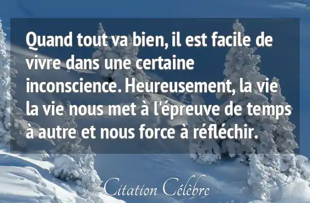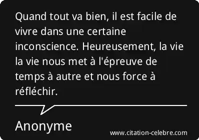 Quand tout va bien, il est facile de vivre dans une certaine inconscience. Heureusement, la vie la vie nous met à l'épreuve de temps à autre et nous force à réfléchir.