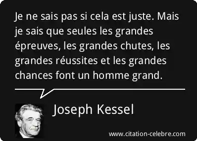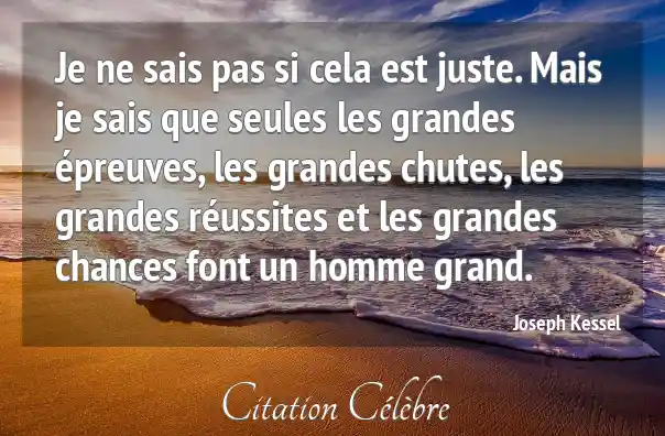 Je ne sais pas si cela est juste. Mais je sais que seules les grandes épreuves, les grandes chutes, les grandes réussites et les grandes chances font un homme grand.