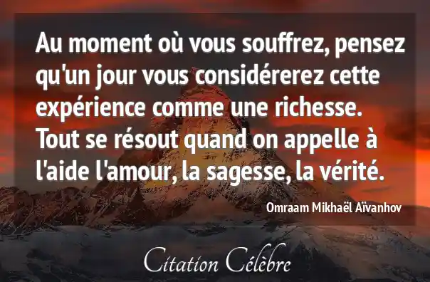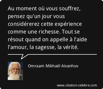 Au moment où vous souffrez, pensez qu'un jour vous considérerez cette expérience comme une richesse. Tout se résout quand on appelle à l'aide l'amour, la sagesse, la vérité.