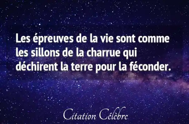 Les épreuves de la vie sont comme les sillons de la charrue qui déchirent la terre pour la féconder.