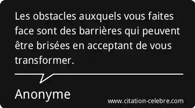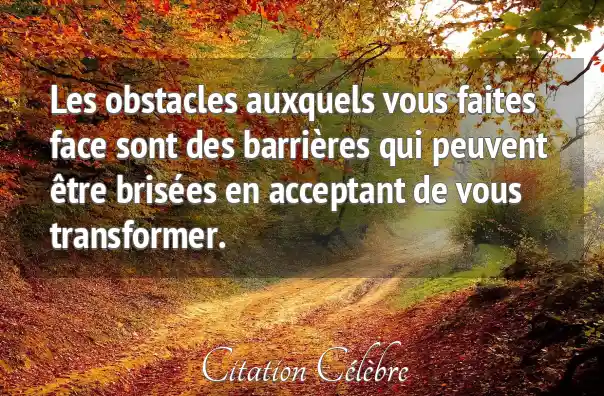 Les obstacles auxquels vous faites face sont des barrières qui peuvent être brisées en acceptant de vous transformer.