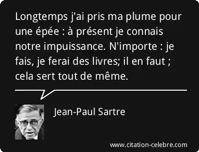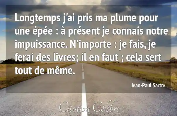 Longtemps j'ai pris ma plume pour une épée : à présent je connais notre impuissance. N'importe : je fais, je ferai des livres; il en faut ; cela sert tout de même.