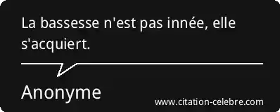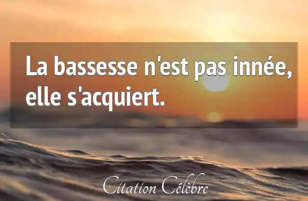 La bassesse n'est pas innée, elle s'acquiert.
