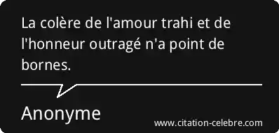 La colère de l'amour trahi et de l'honneur outragé n'a point de bornes.
