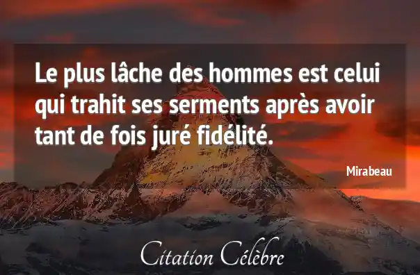 Le plus lâche des hommes est celui qui trahit ses serments après avoir tant de fois juré fidélité.