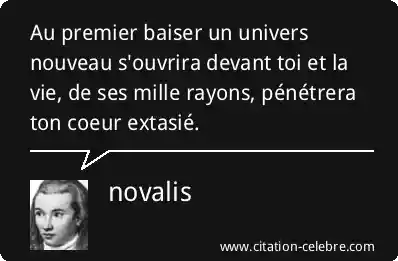 Au premier baiser un univers nouveau s'ouvrira devant toi et la vie, de ses mille rayons, pénétrera ton coeur extasié.