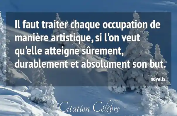 Il faut traiter chaque occupation de manière artistique, si l'on veut qu'elle atteigne sûrement, durablement et absolument son but.