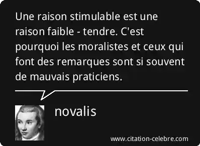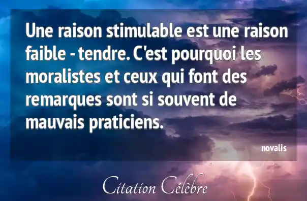 Une raison stimulable est une raison faible - tendre. C'est pourquoi les moralistes et ceux qui font des remarques sont si souvent de mauvais praticiens.