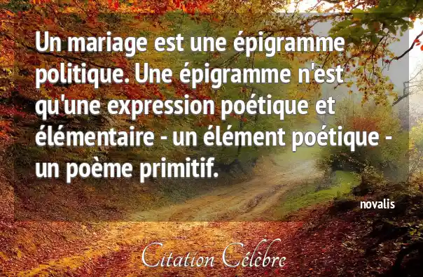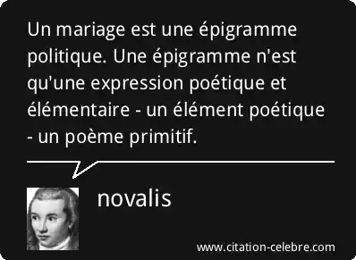 Un mariage est une épigramme politique. Une épigramme n'est qu'une expression poétique et élémentaire - un élément poétique - un poème primitif.