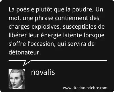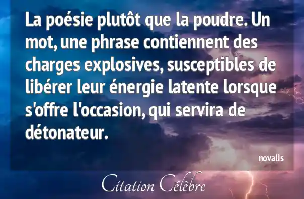 La poésie plutôt que la poudre. Un mot, une phrase contiennent des charges explosives, susceptibles de libérer leur énergie latente lorsque s'offre l'occasion, qui servira de détonateur.