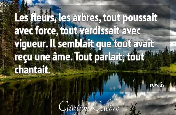 Les fleurs, les arbres, tout poussait avec force, tout verdissait avec vigueur. Il semblait que tout avait reçu une âme. Tout parlait; tout chantait.
