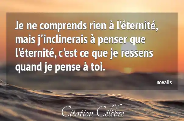 Je ne comprends rien à l'éternité, mais j'inclinerais à penser que l'éternité, c'est ce que je ressens quand je pense à toi.