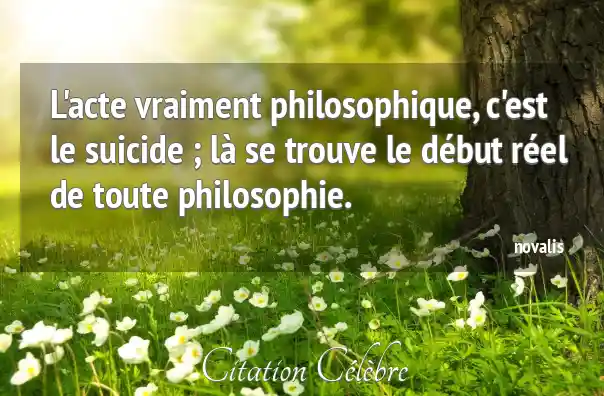 L'acte vraiment philosophique, c'est le suicide ; là se trouve le début réel de toute philosophie.
