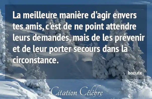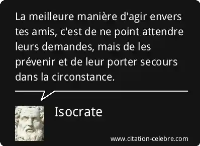La meilleure manière d'agir envers tes amis, c'est de ne point attendre leurs demandes, mais de les prévenir et de leur porter secours dans la circonstance.