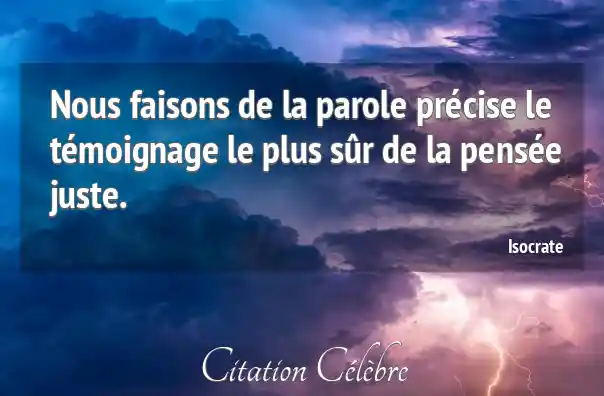 Nous faisons de la parole précise le témoignage le plus sûr de la pensée juste.