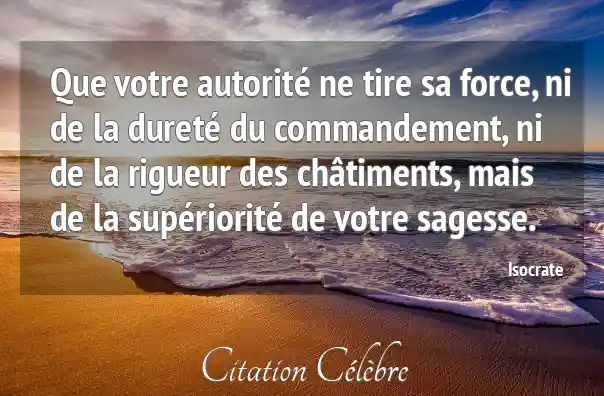 Que votre autorité ne tire sa force, ni de la dureté du commandement, ni de la rigueur des châtiments, mais de la supériorité de votre sagesse.